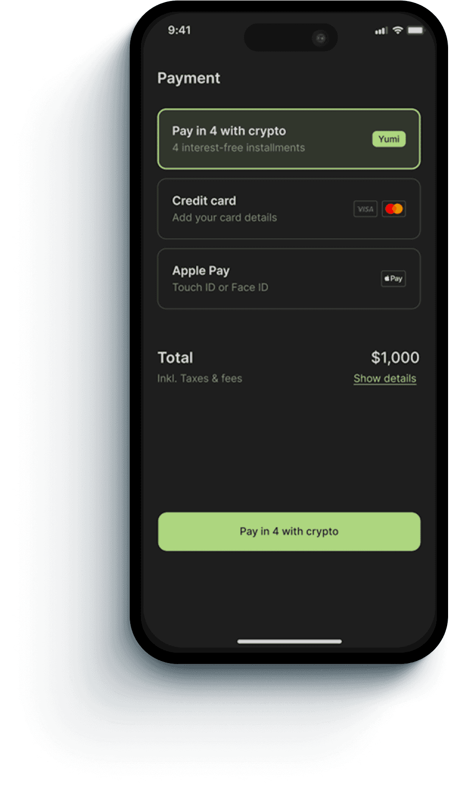 Select Yumi as your payment method to split your purchase instantly into 4 easy, zero-interest installments